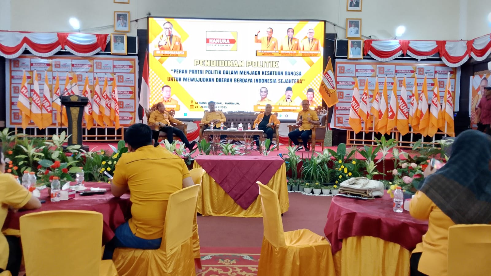 ‎BETANJAK.COM, KARIMUN_ Ketua DPD Partai Hati Nurani Rakyat ( Hanura ) Kepri, Ady Hermawan membuka secara resmi pendidikan politik DPC Hanura Karimun, Selasa 24 Desember 2025 di Gedung Nasional Karimun, Kabupaten Karimun.