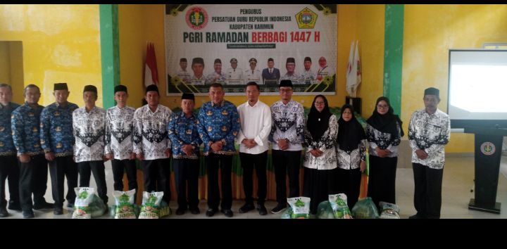 ‎BETANJAK.COM, KARIMUN _Persatuan Guru Republik Indonesia Kabupaten Karimun berkolaborasi dengan pengurus PGRI Kecamatan_ kecamatan, melalui PGRI Ramadan berbagi 1447 hijriah membagikan ratusan paket sembako kepada tenaga pendidik negeri dan swasta yang ada di Kabupaten Karimun.