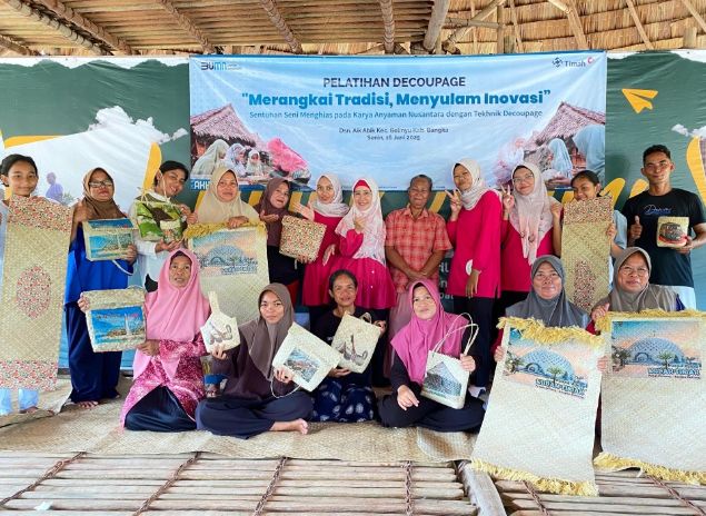 BETANJAK.COM, BANGKA – Sebagai bentuk komitmen dalam mendukung pelestarian budaya sekaligus meningkatkan perekonomian masyarakat adat, PT Timah menggelar pelatihan decoupage ‘Merangkai Tradisi, Menyulam Inovasi’ sentuhan seni menghias pada karya anyaman Nusantara dengan teknik decoupage.