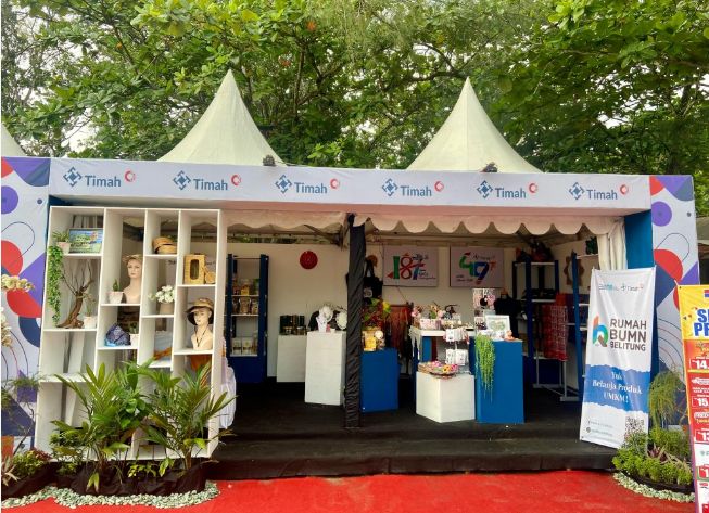 PT Timah bersama Rumah BUMN Belitung menghadirkan berbagai produksi UMKM mitra binaan mulai dari food and beverage, kriya, kerajinan, batik dan lainnya. Melalui pameran ini diharapkan dapat mempromosikan produk UMKM semakin dikenal secara luas.