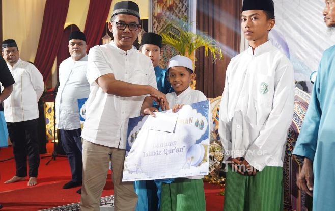 Rafiz menjadi salah satu dari lima santri yang menerima bantuan sosial Tahfiz Al-Qur’an dari PT TIMAH. Bantuan ini diserahkan dalam rangkaian kegiatan Safari Ramadan perusahaan di wilayah Kundur yang digelar di Wisma Kundur, Senin (9/3/2026).