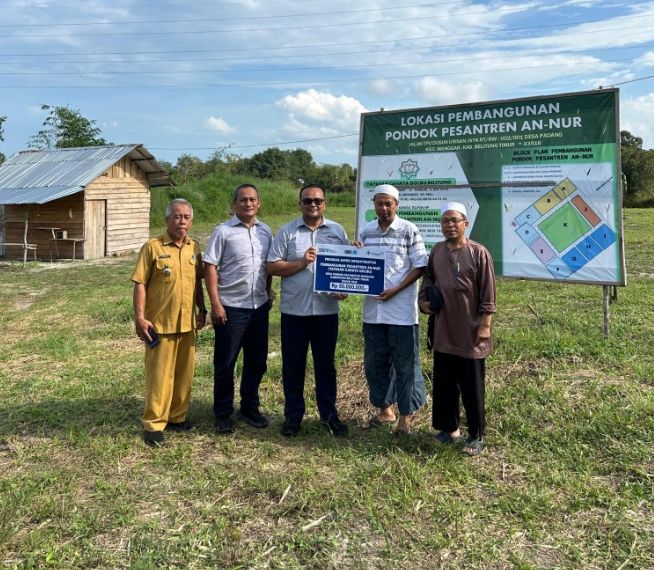 BETANJAK.COM, BELITUNG TIMUR — Untuk mendukung peningkatan kualitas sumber daya manusia di lingkar tambang, PT Timah menyerahkan bantuan kepada Yayasan Cahaya Qolbu Belitung yang akan membangun Pondok Pesantren An-Nur di Desa Padang, Kecamatan Manggar, Kabupaten Belitung Timur.